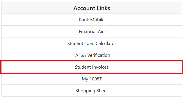 2. Select the Student Invoices button from the Account Links menu