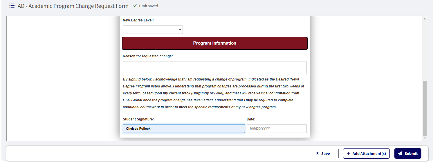 Some documents may be listed as “requested” but are required so please contact your Student Finance Advisor or Student Success Counselor if you are uncertain. The “AR-Student Records Release Consent Form” is an optional form that is available for all students; this form is only required if you wish to provide consent for another party to speak with us on your behalf.